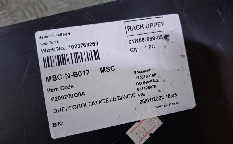 Абсорбер бампера Nissan Terrano 2014-2022 3 D10