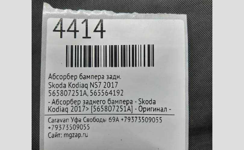 Абсорбер бампера Skoda Kodiaq 2017 565807251A NS7, задний