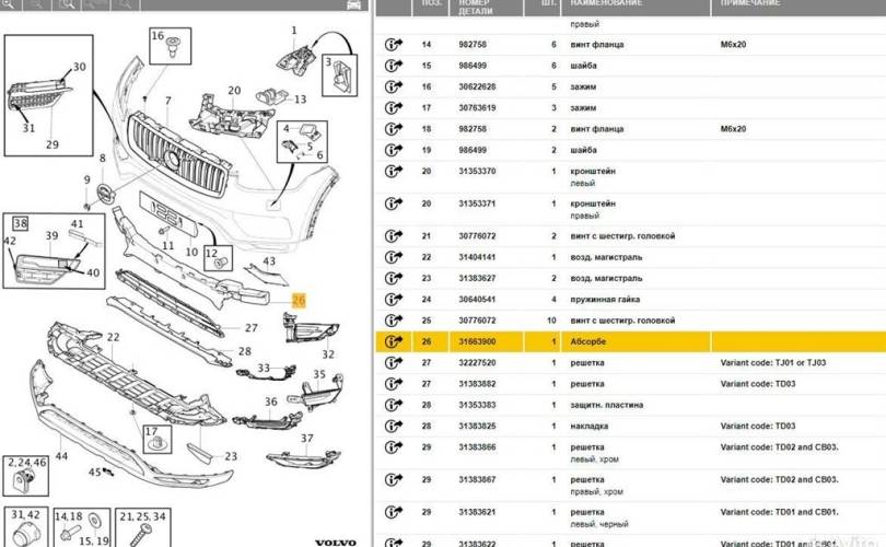 Абсорбер бампера Volvo XC90 II (2014—2019)