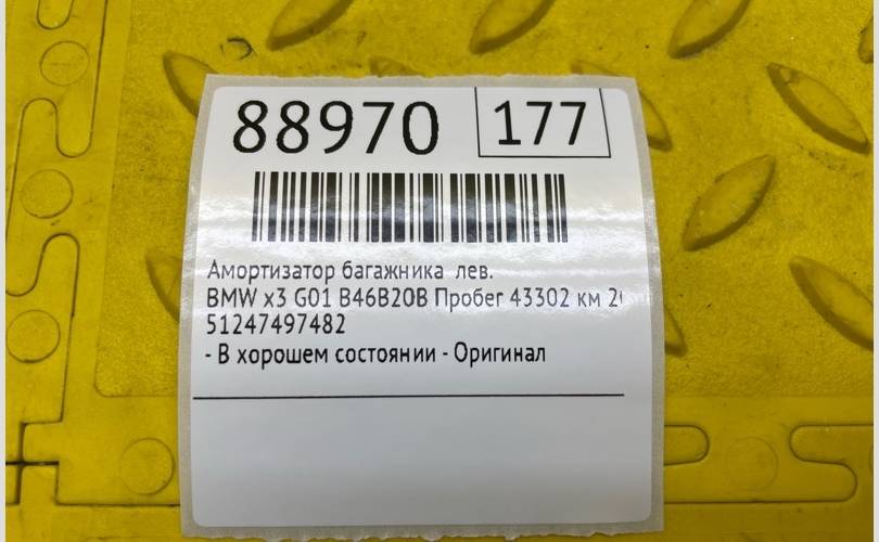 Амортизатор багажника BMW x3 2022 51247497482 G01 B46B20B ПРОБЕГ 43302 КМ, левый