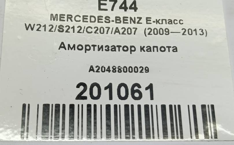 Амортизатор капота на MERCEDES-BENZ E-класс W212/S212/C207/A207 (2009—2013) A2048800029