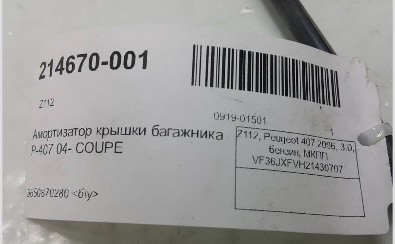Амортизатор крышки багажника PEUGEOT 407 8731L2 КУПЕ