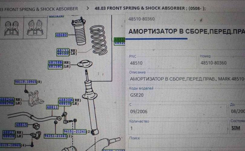 Амортизатор передний правый ориг Стойка амортизационная передняя Lexus IS 06-14г