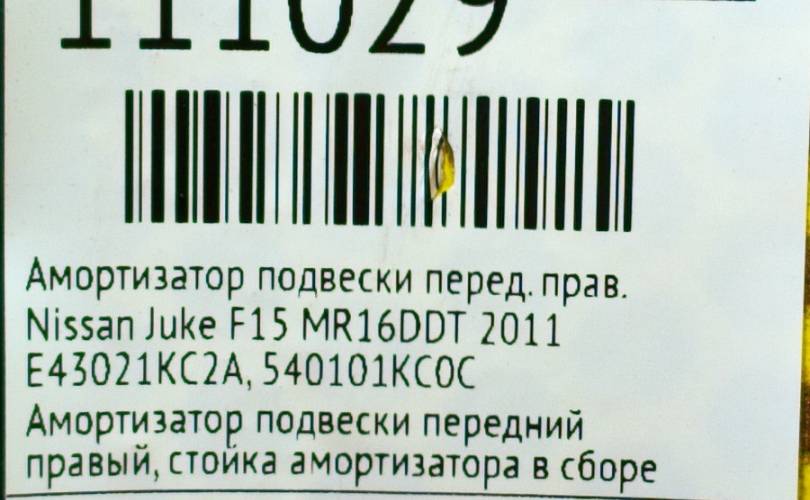 Амортизатор подвески Nissan Juke 2011 E43021KC2A F15 MR16DDT, передний правый
