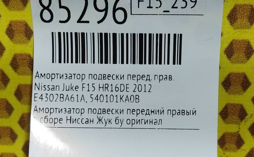Амортизатор подвески Nissan Juke 2012 E4302BX85B F15 MR16DDT, передний правый