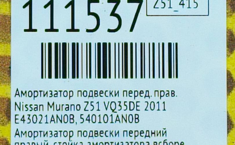 Амортизатор подвески Nissan Murano 2011 E43021AN0B Z51 VQ35DE, передний правый