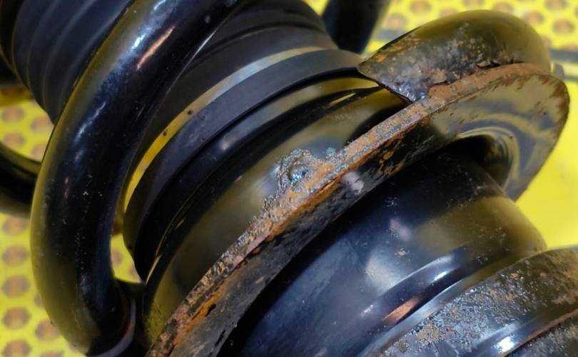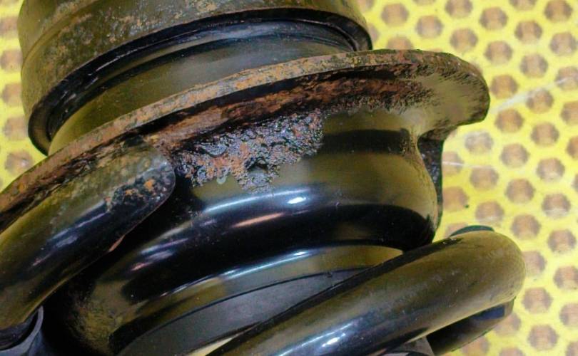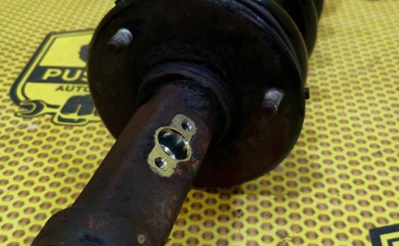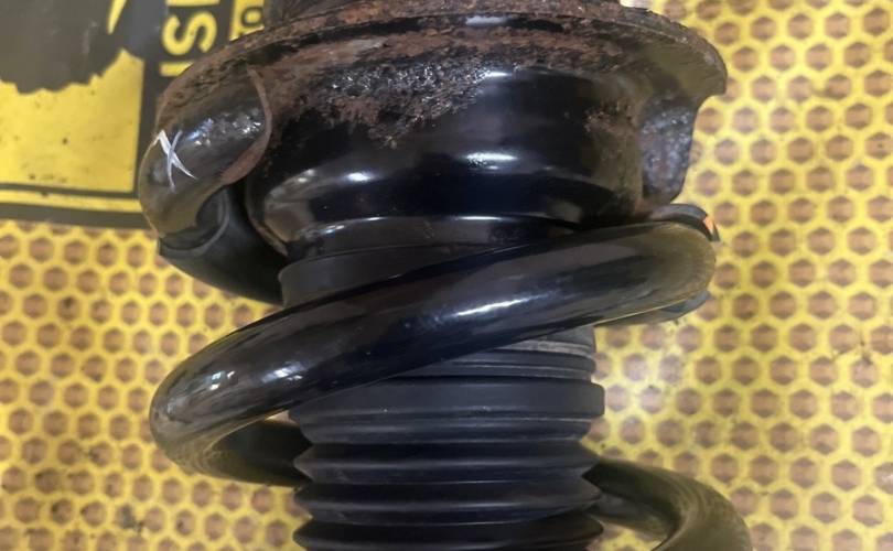 Амортизатор подвески передний левый, стойка амортизатора в сборе Ниссан Патрол 6 бу оригинал с дефектом пружины