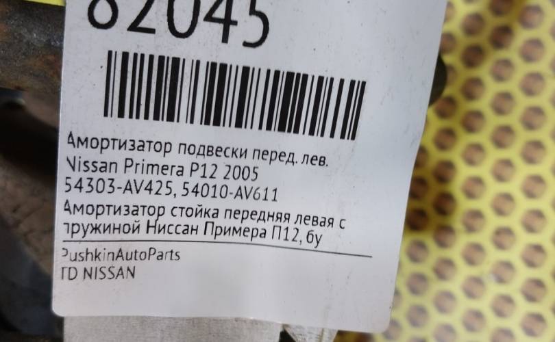 Амортизатор подвески Nissan Primera 2005 54303AV425 P12, передний левый