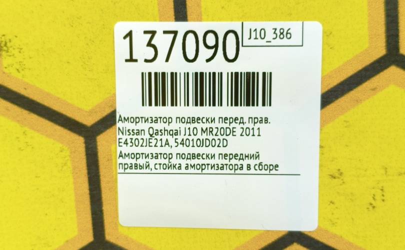 Амортизатор подвески Nissan Qashqai 2007 E4302JE21A J10 MR20DE, передний правый