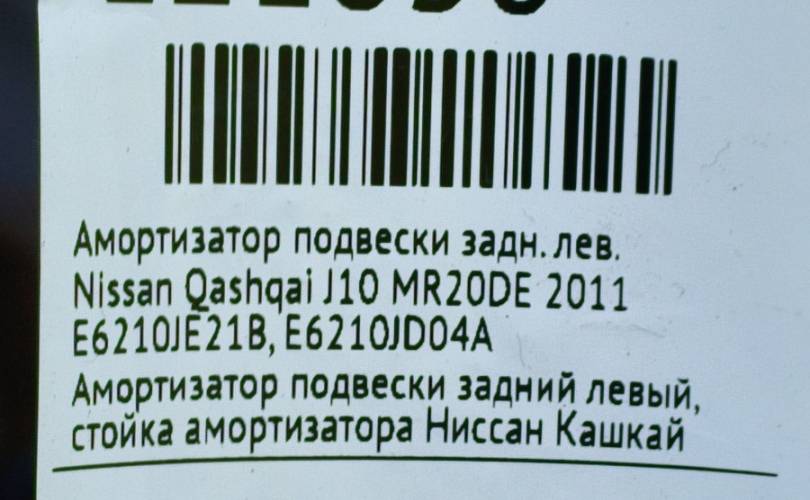 Амортизатор подвески Nissan Qashqai 2011 E6210JE21B J10 MR20DE, задний левый