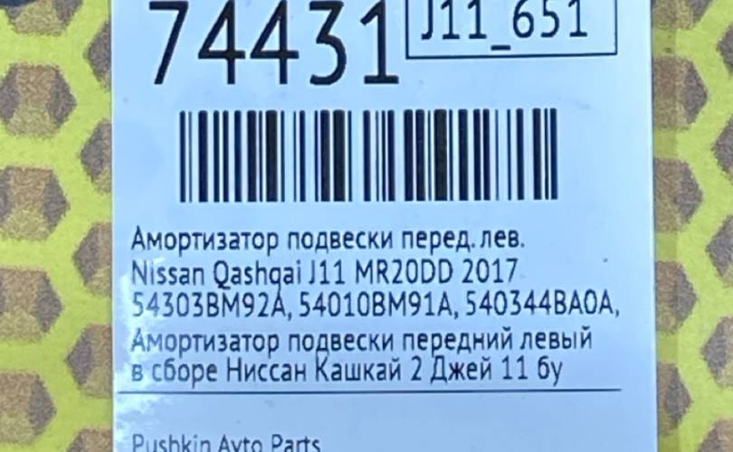 Амортизатор подвески Nissan Qashqai 2017 54303BM92A J11 MR20DD, передний левый