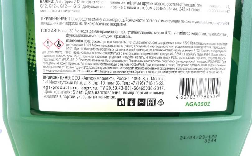 Антифриз AGA Z42, готовый к применению предназначен для систем охлаждения бензиновых и дизельных двигателей легковых и грузовых автомобилей всех марок (иностранных и российских). Идеален для высокофорсированных двигателей с турбонаддувом и двигателей, эксплуатируемых при высоких частотах вращения коленчатого вала (езда при высоких скоростях, интенсивных разгон).