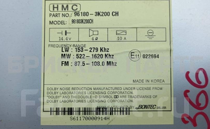 1) Наименование детали: Автомагнитола Хендай Соната V поколение NF