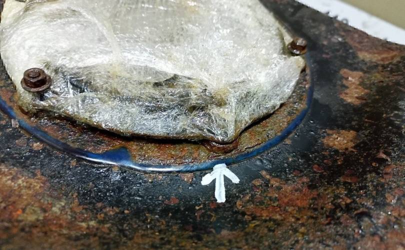 ЕСТЬ КОРРОЗИЯ, ОБЛОМАНА ШПИЛЬКА КРЕПЛЕНИЯ НАСОСА, ЕСТЬ ВМЯТИНА
