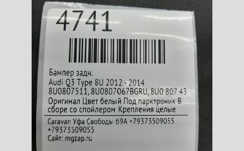 Бампер Audi Q3 2012 - 2014 8U0807511 TYPE 8U, задний