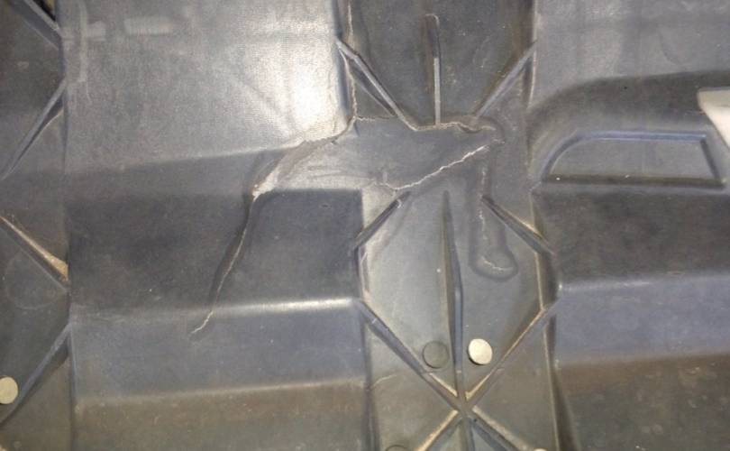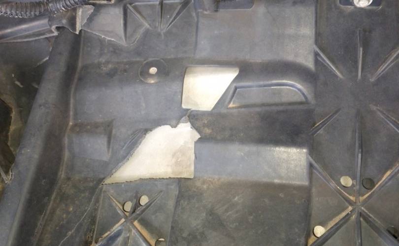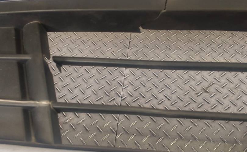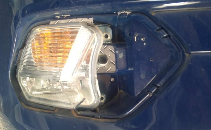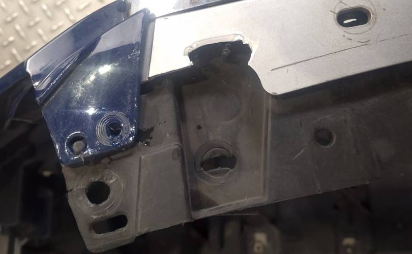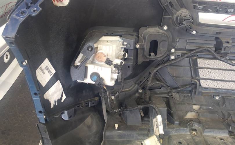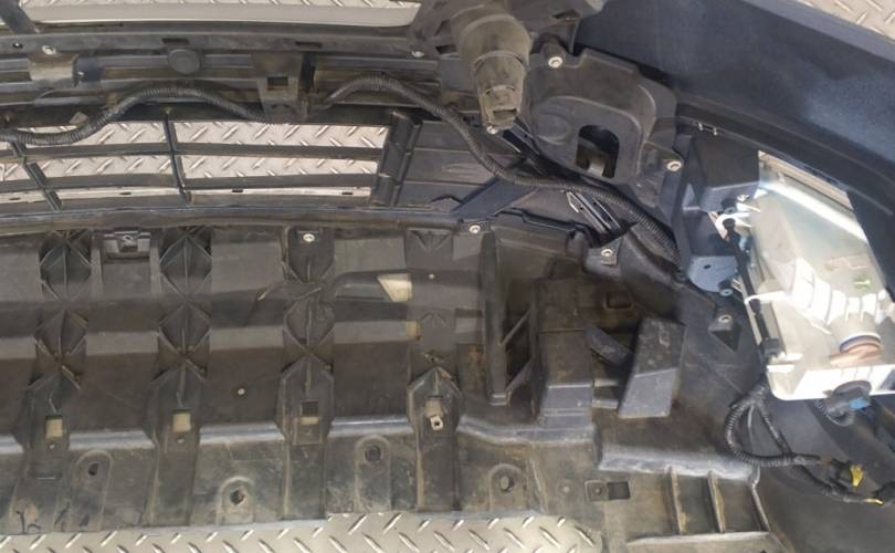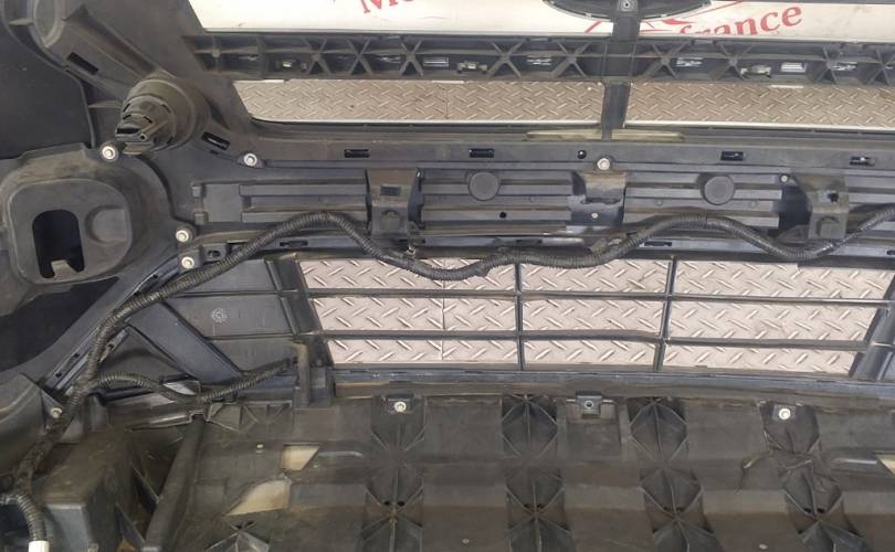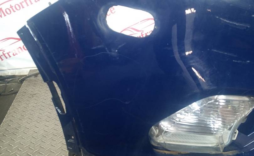 Транспортировочные царапины, дефект нижней решётки бампера, отсутствует накладка правой противотуманной фары. отверстия под спецсигналы. Не оригинальная скорлупа. дефект пыльника радиатора