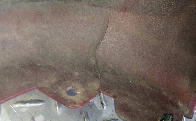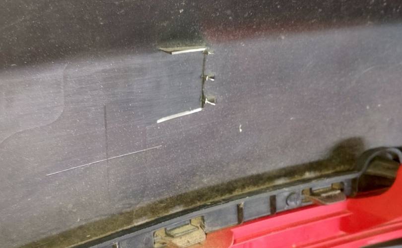 Транспортировочные царапины, залом с правой стороны, надломано верхнее левое крепление, притертости, дефект правого нижнего крепления