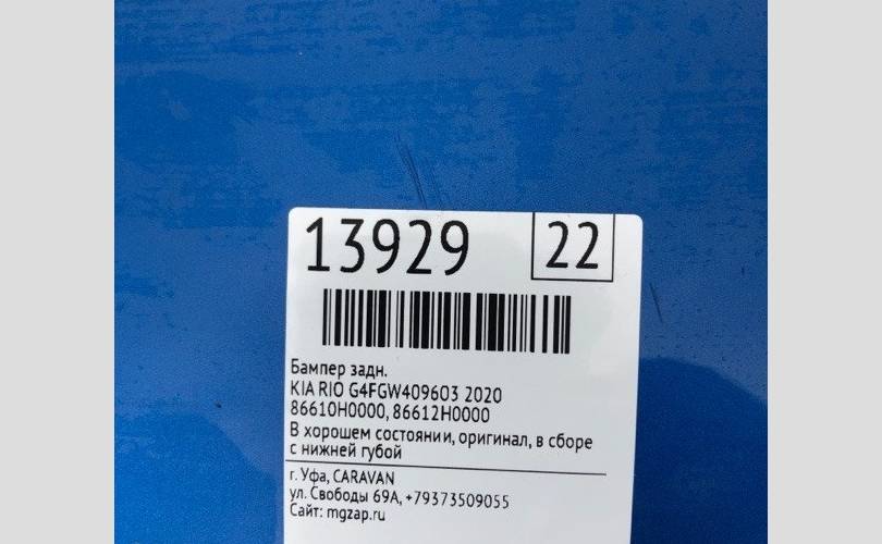 Бампер Kia Rio 2020 86610H0000 G4FGW409603, задний