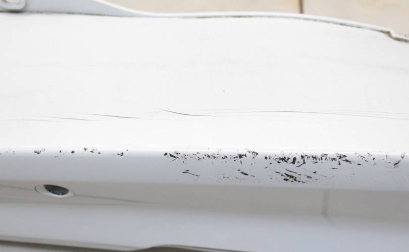 Дорестаил, отверстия под сонары. Деформирован, есть царапины и потертости, крепления без дефектов. Запчасть из Японии, без пробега по РФ.