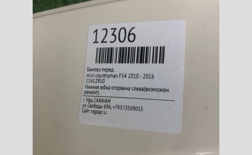 Нижняя юбка оторвана слева(возможен ремонт)