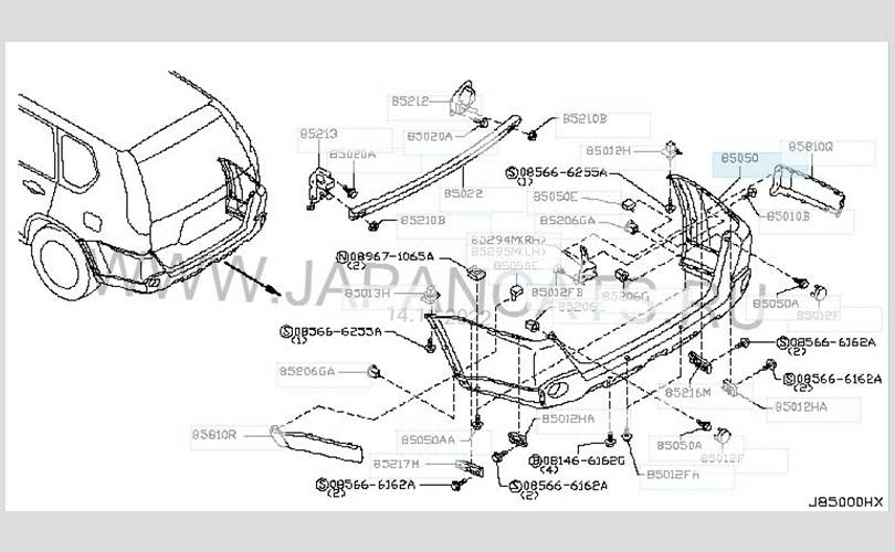 Бампер NIssan X-trail 2009-2014 85022JU14H T31R, задний