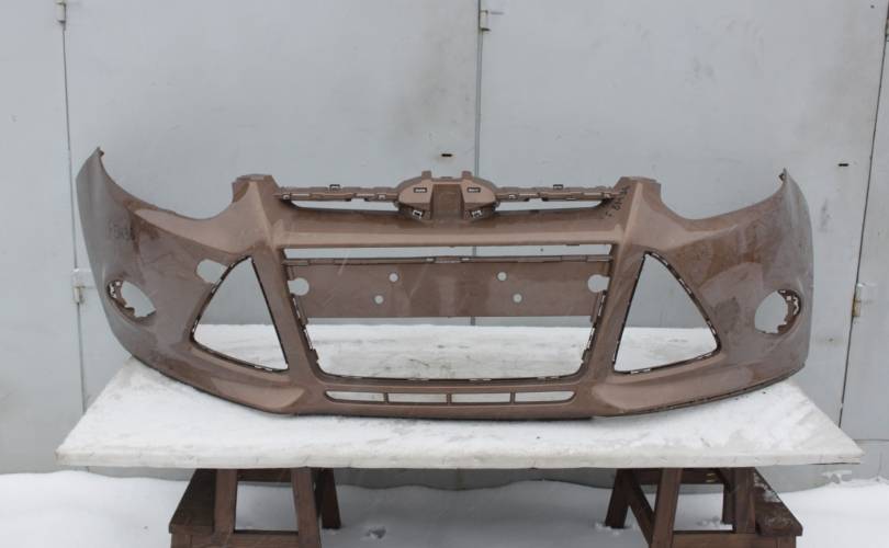 Бампер передний голый, б/у оригинал с мелким дефектом: сломано 4 верхних центральных креплений. Более подробно дефекты можно увидеть на фотографиях в объявлении. Цвет: коричнево-золотой металлик. Подходит для автомобиля Ford Focus 3 (Focus III) дорестайлинг с 2011 по 2015 год выпуска.