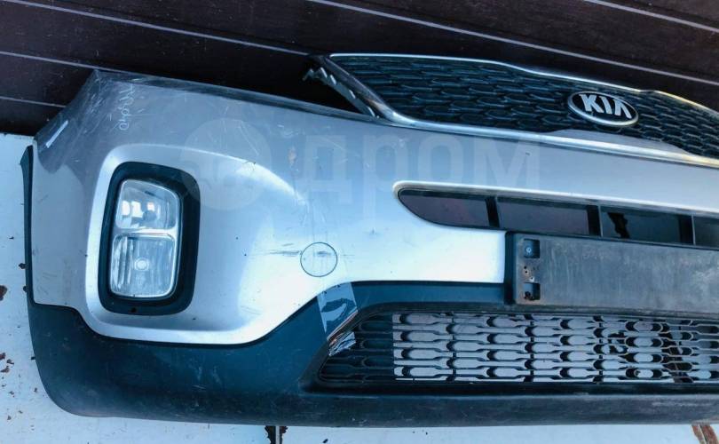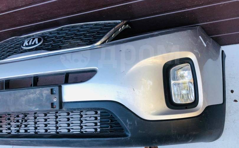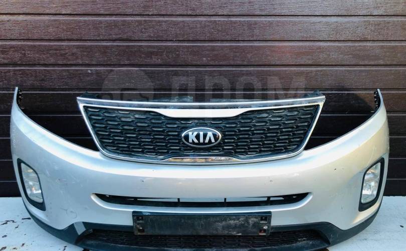 Бампер передний в сборе с ХРОМИРОВАННОЙ РЕШЕТКОЙ РАДИАТОРА и ПТФ, РЕСТАЙЛИНГ 2012-2020г, без абсорбера, бу оригинал контрактный для Киа Кия Соренто ХМ ИКСМ 2 Kia Sorento XM 2 2012-2020 (2012 2013 2014 2015 2016 2017 2018 2019 2020 год)