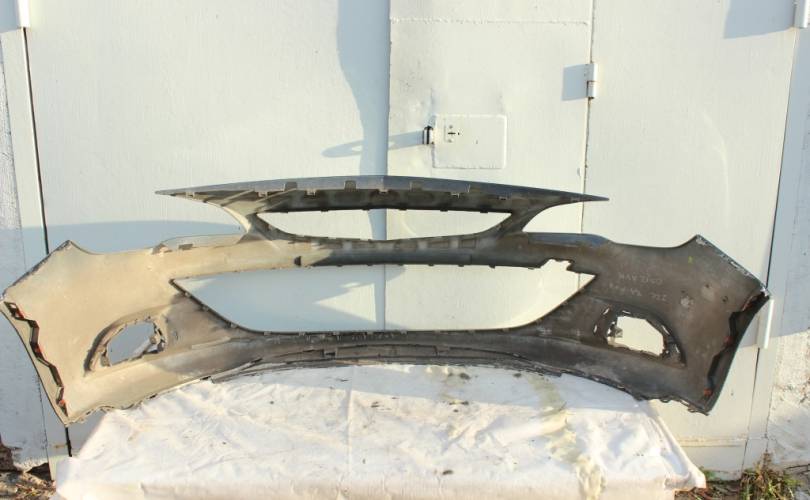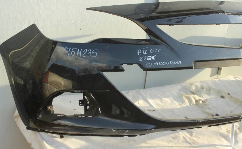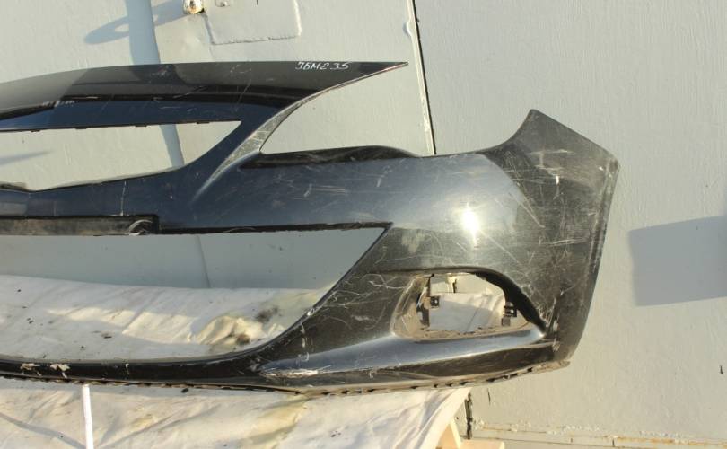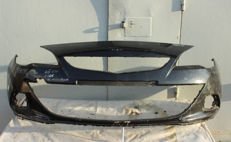 Бампер передний голый, б/у оригинал с недостатком: справа и слева сломаны крайние проушины крепления бампера к крылу. Цвет: черный металлик. Подходит для автомобиля Opel Astra J GTC (Опель Астра Джей 3-х дверка, купе, купэ) с 2011 по 2016 год выпуска.