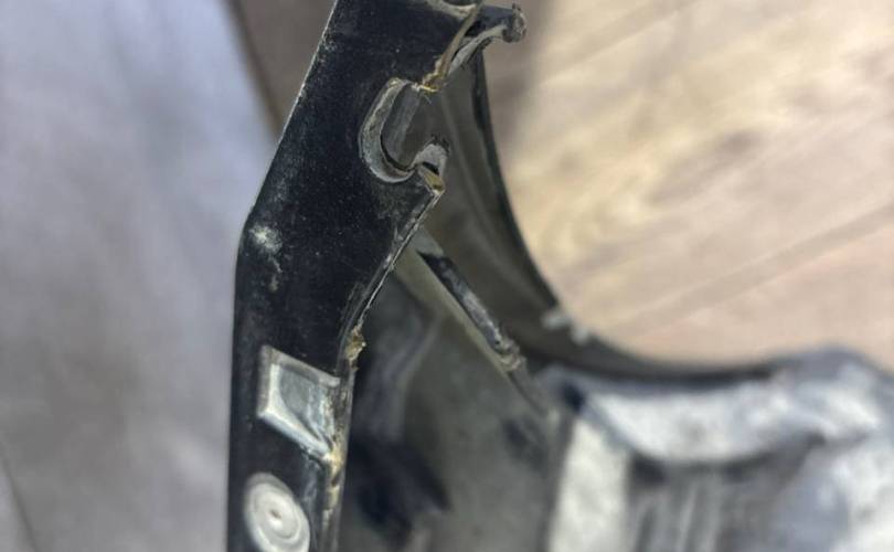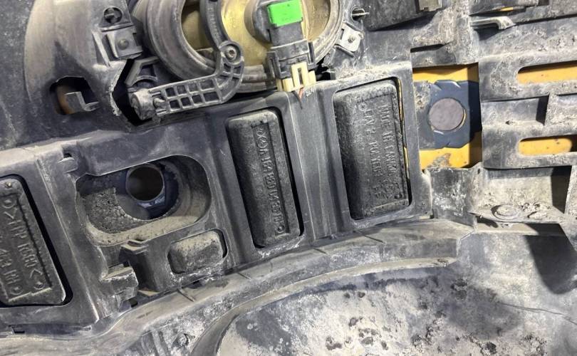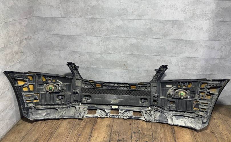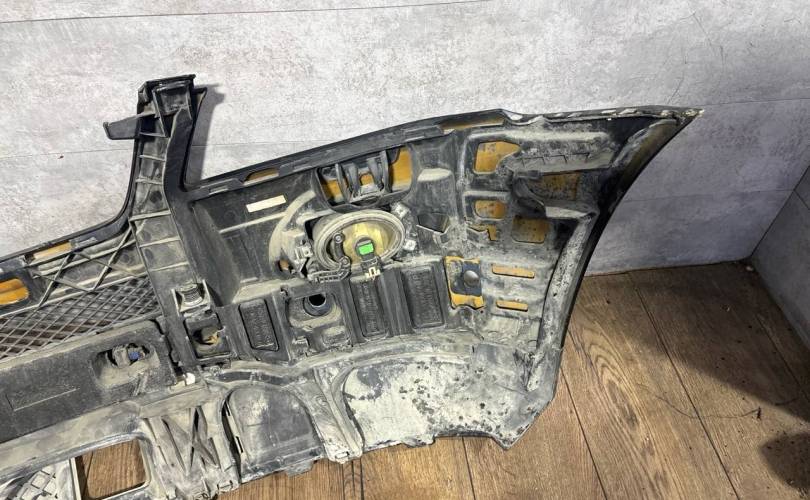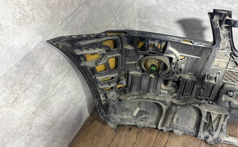 В сборе, с птф, с парктрониками, под омыватели, царапины, нет двух парктроников и выломаны под них крепления, небольшой дефект крепления