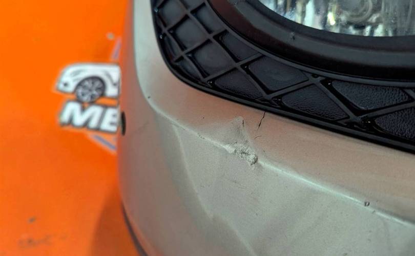 Номер по складу:310384 Рестайлинг. Серый. Под фароомыватели, с противотуманками, с парктрониками ( не хватает двух ). Имеются царапины, маленькая вмятина и маленькая трещина.