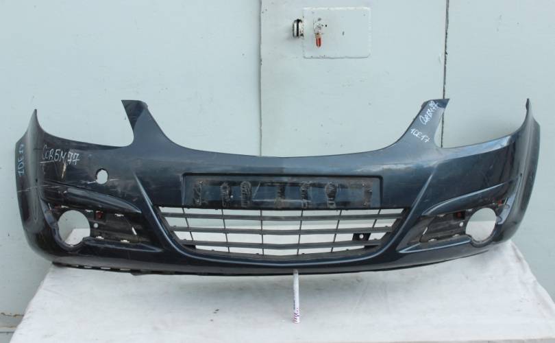 Бампер передний в сборе с нижней центральной решеткой, б/у оригинал в хорошем состоянии. Частично сломаны кронштейны крепления решетки радиатора, т.к она крепится к бамперу путем распайки этих кронштейнов и они ломаются при ее демонтаже. Цвет: темно-серый металлик. Подходит для автомобиля Opel Corsa D (Опель Корса Д) дорестайлинг с 2006 по 2010 год выпуска. Запчасть Б/У!!! Наличие царапин и сколов не является дефектом!!!
