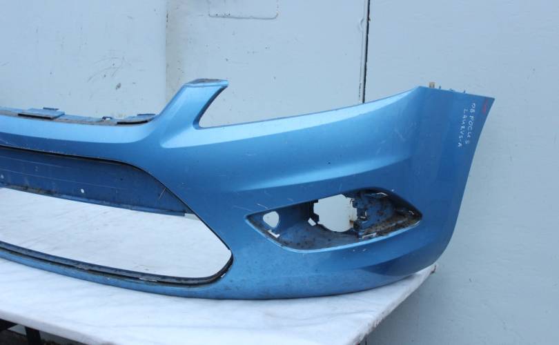 Бампер передний голый, б/у оригинал в хорошем состоянии. Присутствует маленький недостаток: небольшая трещина на проушине нижнего крепления. Цвет: голубой металлик. Подходит для автомобиля Ford Focus II (Форд Фокус 2) рестайлинг с 2008 по 2011 год выпуска.