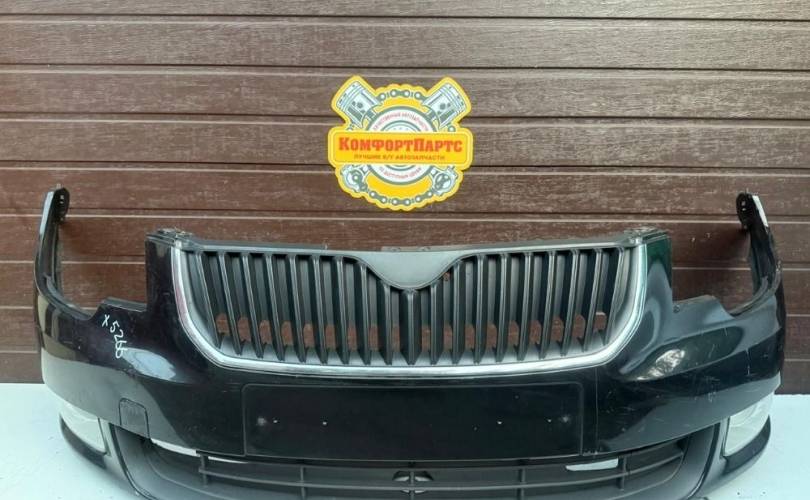 Бампер передний контрактный, в сборе с решетками радиатора, ПТФ, Дорестайлинг , бу оригинал для Шкода Суперб Т3 Skoda Superb T3 2 2008-2013 (2008 2009 2010 2011 2012 2013 год)