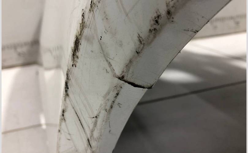 Имеются царапины, небольшая трещина, надломлено крепление в нижней части.