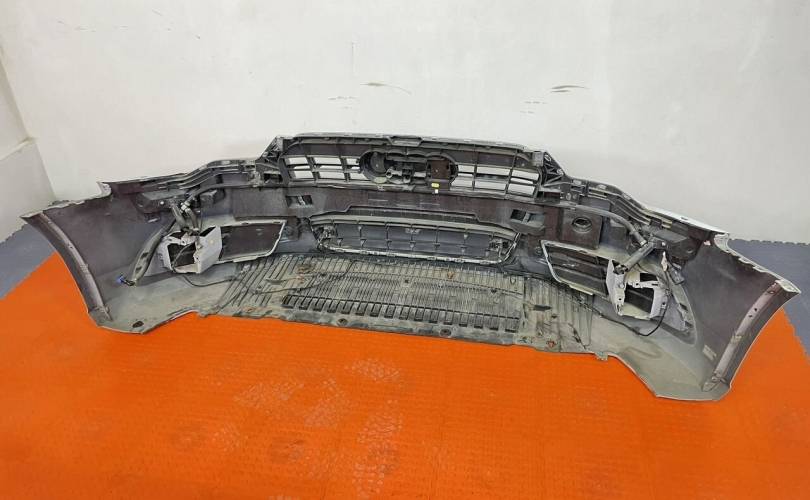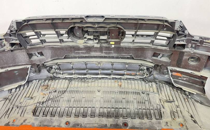 Б.У. Оригинальный Бампер передний в сборе: Решетка радиатора, решетка ПТФ левая, правая, датчики парковки, проводка переднего бампера, крышки омывателя фар, форсунки омывателя фар, защита переднего бампера