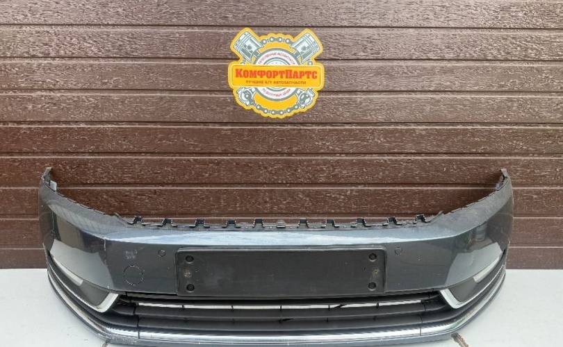 Бампер передний в сборе с ПАРКТРОНИКАМИ и птф бу оригинал для Фольксваген Фольцваген Пассат Пасат В7 Б7 Volkswagen Passat Pasat B7 2011-2015 (2011 2012 2013 2014 2015 год)