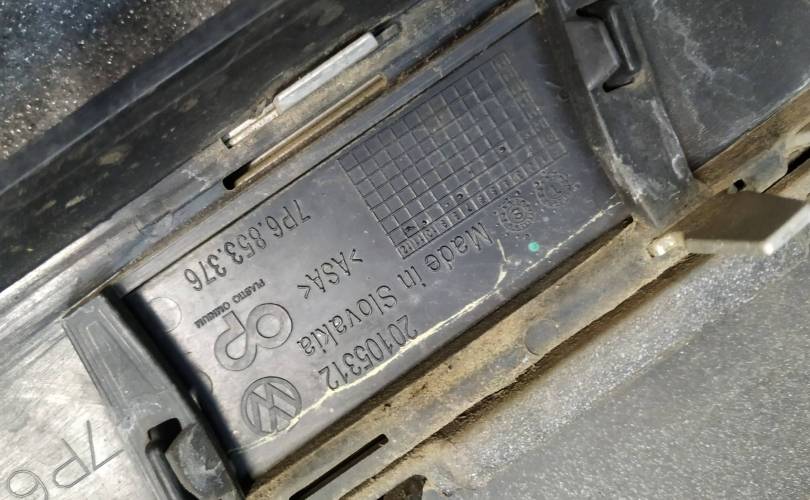 нижняя часть бампера (спойлер) - 7P6807061E, решетка средняя нижняя - 7P6853673, противотуманка с лампой левая - 7P6941699A, правая - 7P6941700A , 7P6853665A - решетка левая, 7P6853666 - правая, крышка буксировочной петли левая - 7P6807185, правая - 7P6807186, заглушки омывателя фар 7P6807368, 7P6807367, спойлер нижний - 7P6807110, накладка противотуманной фары 7P6807489, 7P6807490, решетка средняя - 7P6853677A