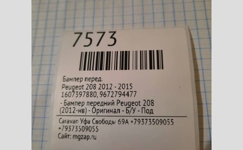 Бампер Peugeot 208 2012 - 2015 1607397880, передний
