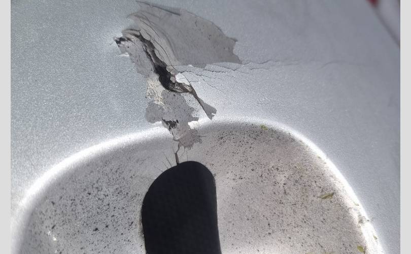 сколы краски , царапины, трещина у буксировочного отверстия