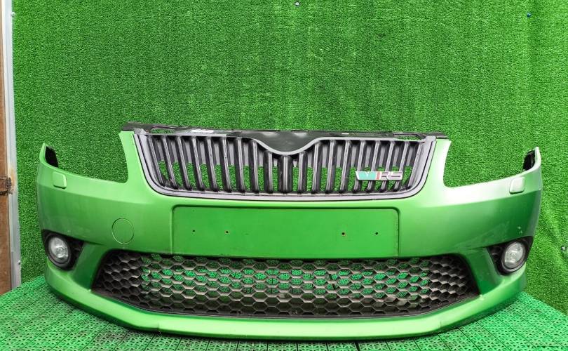 Бампер SKODA FABIA 2 2010- передний RS под омыватель фар зелёный б/у FABIA 2(2007-2015)