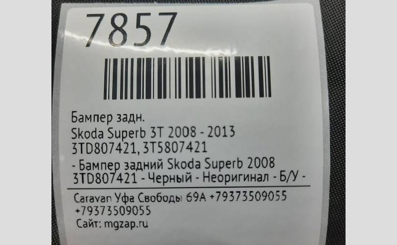 - Бампер задний Skoda Superb 2008 3TD807421