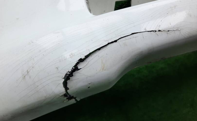 Немного порван, есть глубокие царапины