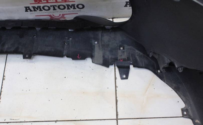 Рестаил, отверстия под сонары. Вмятина на губе под правой туманкой, дефект нижних креплений, верхние без дефектов. Запчасть из Японии, без пробега по РФ.