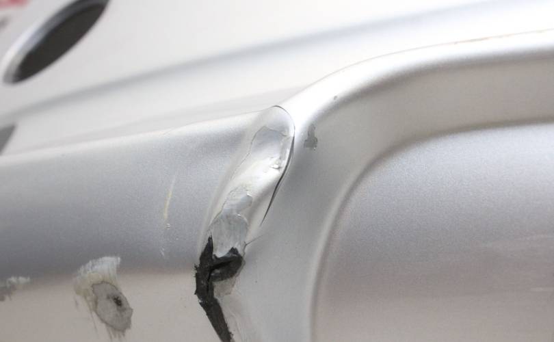 Отверстия под сонары, есть царапины и потертости, вмятина на накладке, разрыв слева, в остальном без дефектов. Запчасть из Японии, без пробега по РФ.