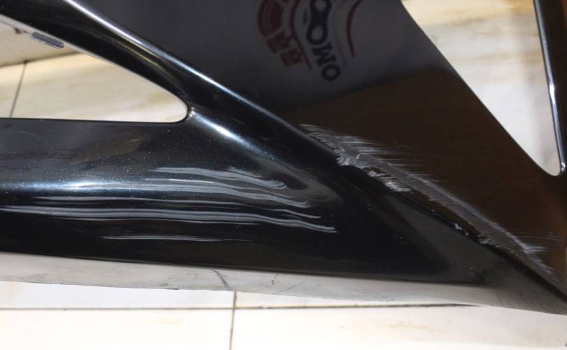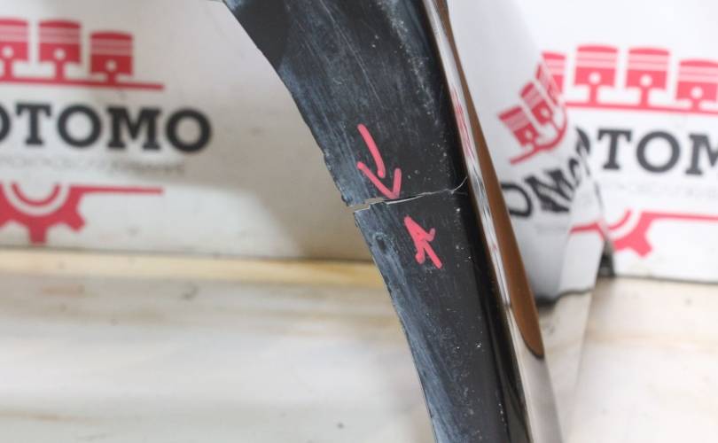 Дорест, отверстия под сонары, есть царапины и потертости, притерт слева, разрывы по низу слева и справа, крепления без дефектов. Запчасть из Японии, без пробега по РФ.
