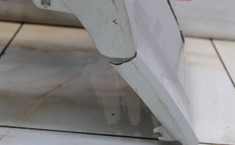 Рестаил, отверстия под сонары, есть царапины и потертости, остатки двустороннего скотча от накладки, небольшой разрыв слева снизу, крепления без дефектов. Запчасть из Японии, без пробега по РФ.