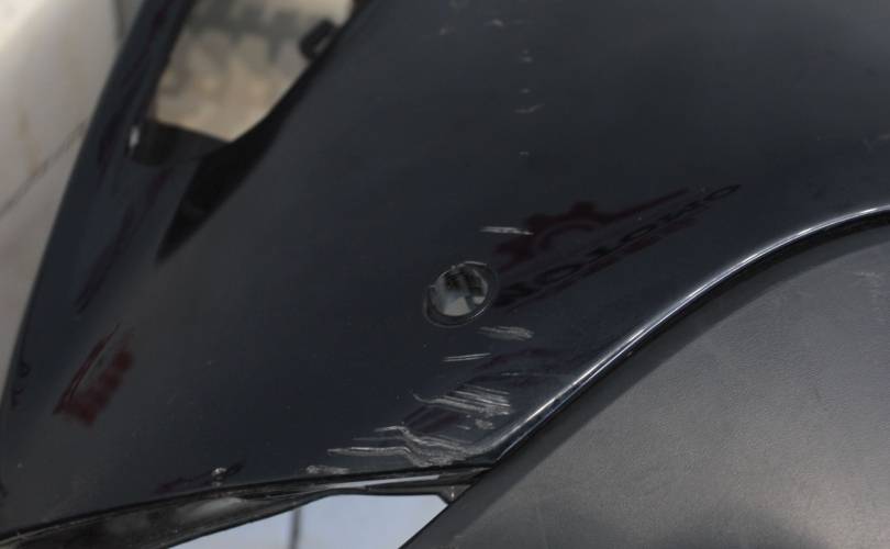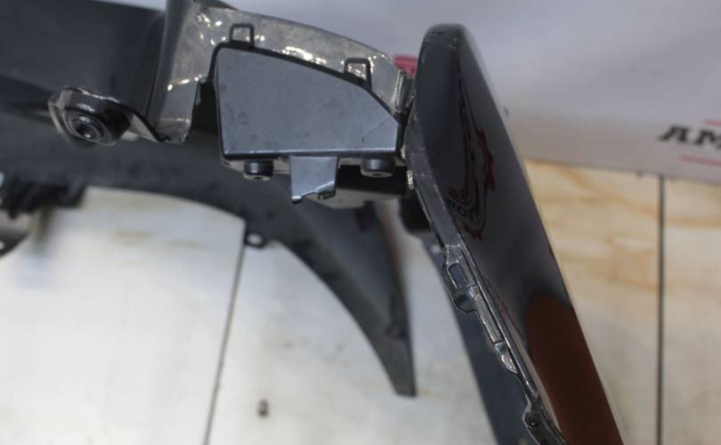 Дорест, отверстия под сонары. Есть царапины и потертости, порваны уши с обоих сторон, сильно притерт слева. Запчасть из Японии, без пробега по РФ.