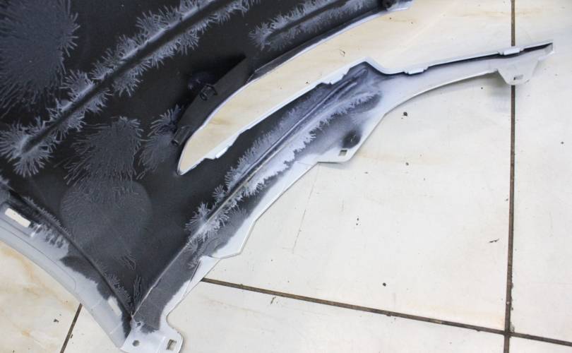 Отверстия под сонары, есть царапины и потертости, жимок слева под фарой, крепления без дефектов. Запчасть из Японии, без пробега по РФ.