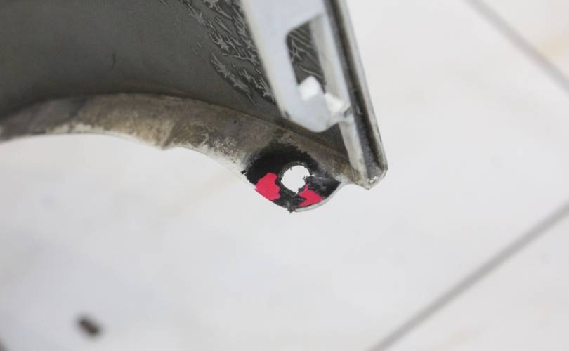 Есть царапины и потертости, вмятина справа, справа одно ухо порвано, верхние крепления к крыльям без дефектов. Запчасть из Японии, без пробега по РФ.