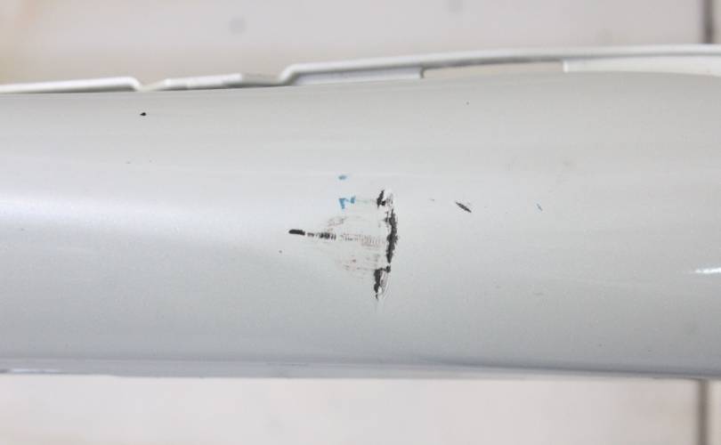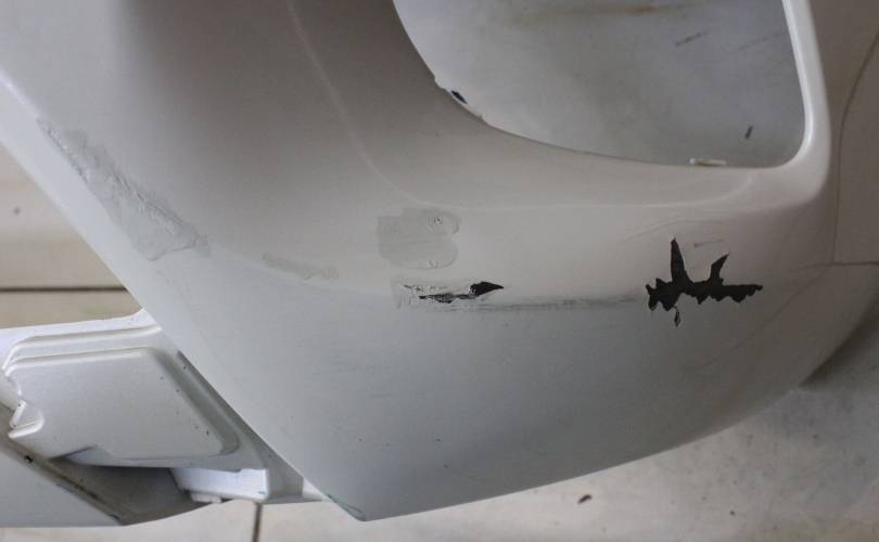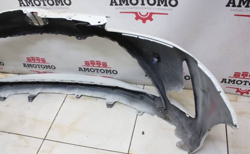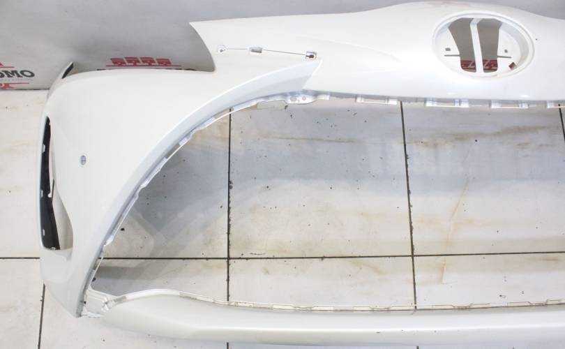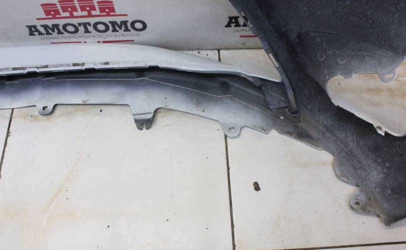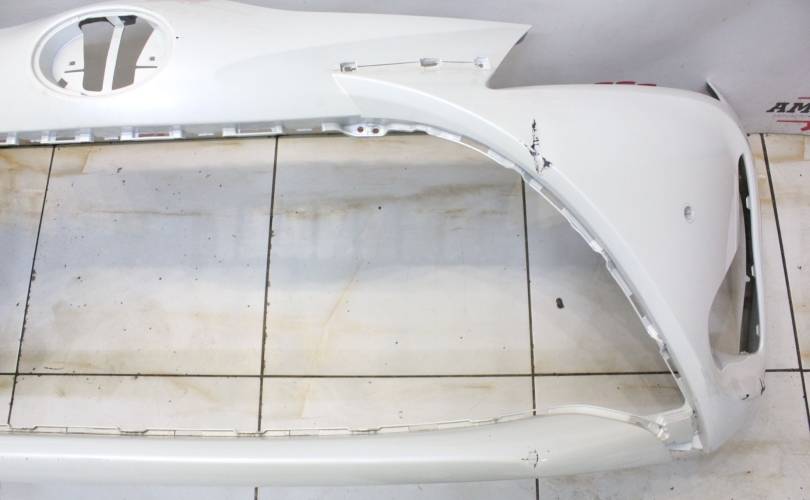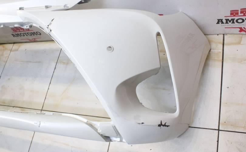 Рестаил, отверстия под сонары. Есть потертости и царапины, вмятины по центру слева, крепления без дефектов. Запчасть из Японии, без пробега по РФ.